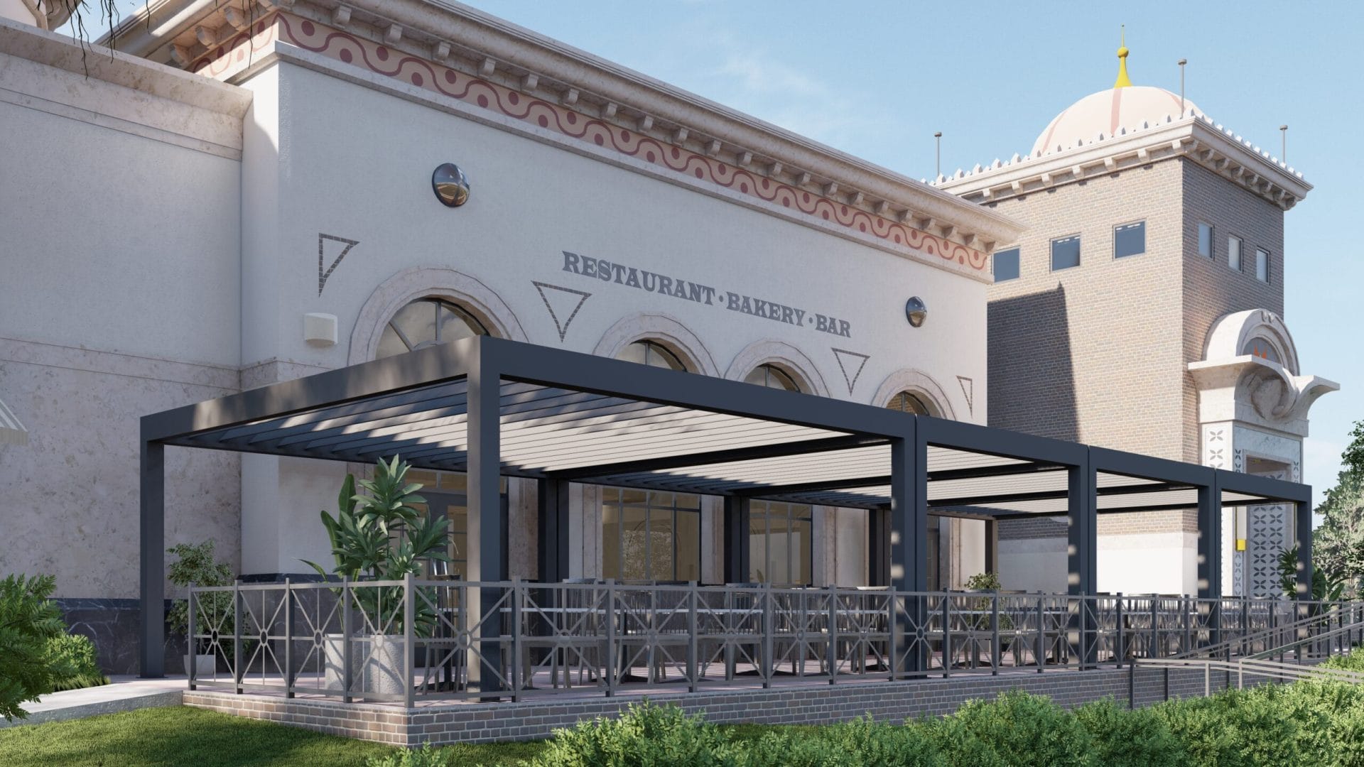 The R-BREEZE™ Pergola features fixed louvers angled at 55° or set vertically at 90°, providing the perfect blend of sun and shade. Our team can design and install a pergola tailored to your commercial needs, blending seamlessly with any architectural style.